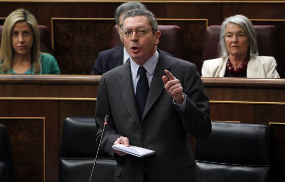 Justice Minister Alberto Ruiz-Gallardón speaking this morning in Congress. / ULY MARTÍN (EL PAÍS)